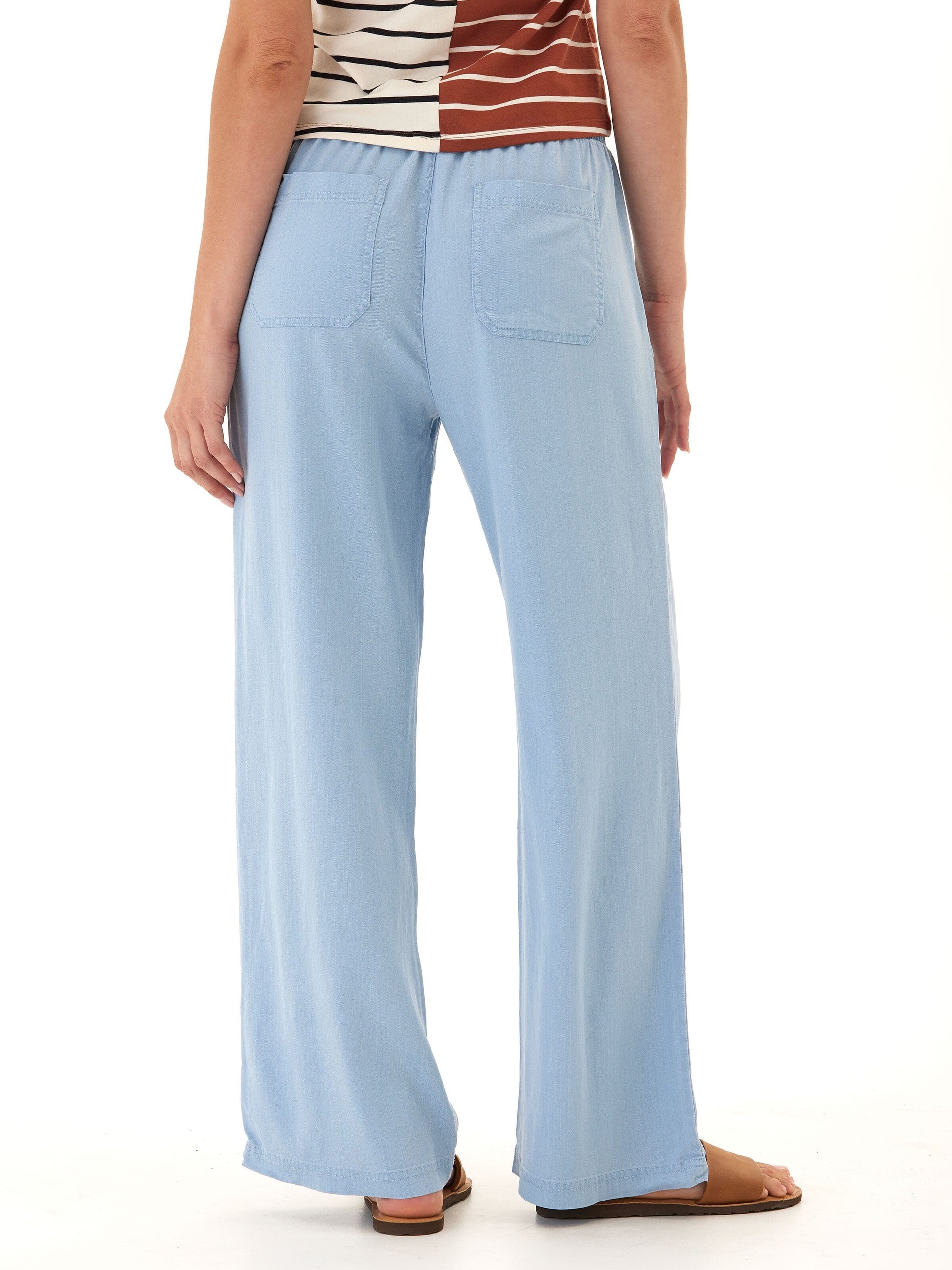 Made from our breathable, stretchy chambray fabric, these wide-leg pants offer the perfect blend of comfort and effortless style. Featuring an elastic waistband with an adjustable drawstring, large front patch pockets, and a relaxed fit, they are designed for all-day wear. Whether you're lounging at home, running errands, or heading to brunch, these versatile pants provide lightweight ease with a soft, lived-in feel. Pair them with your favorite tee or a casual blouse for a laid-back yet polished look.