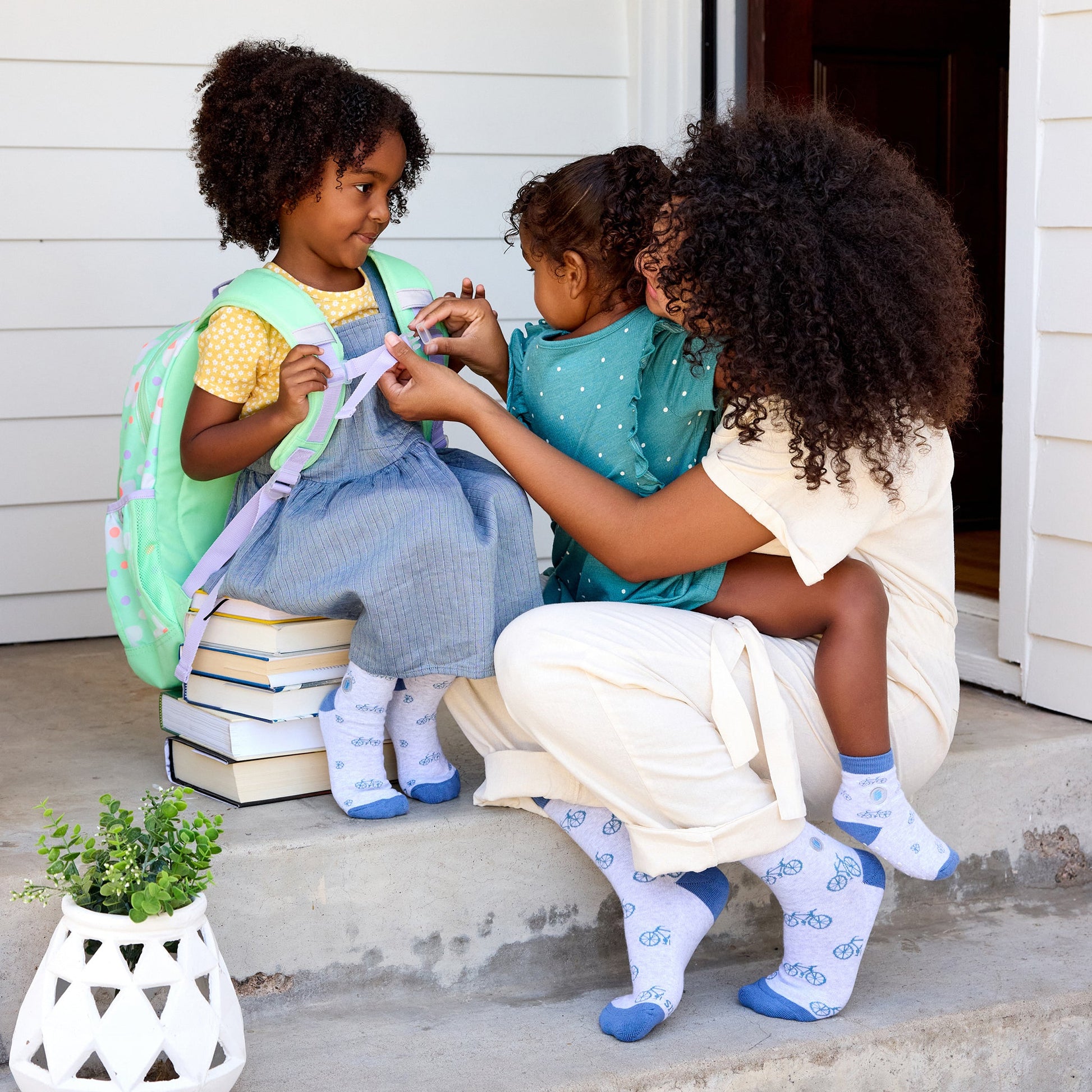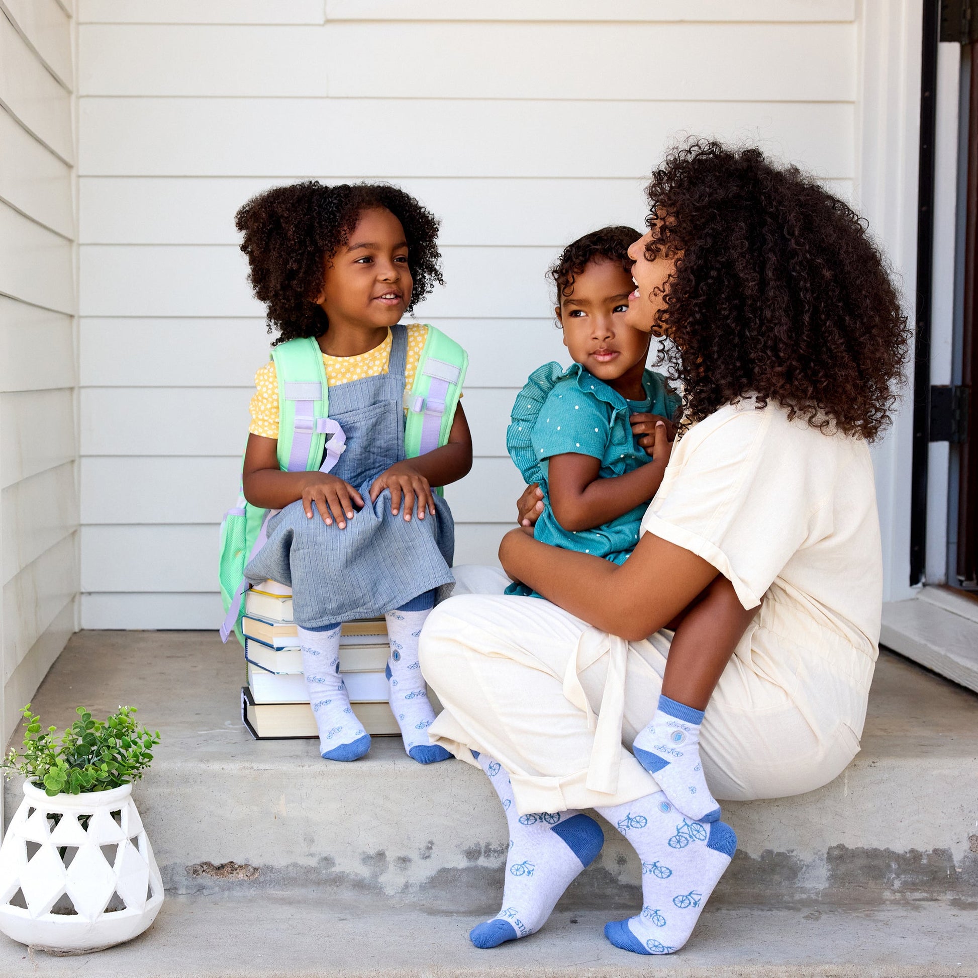 Socks for the bedtime story lovers! Now your bookworm can help little readers just like them with these fun, blue and gray bicycle-themed socks.