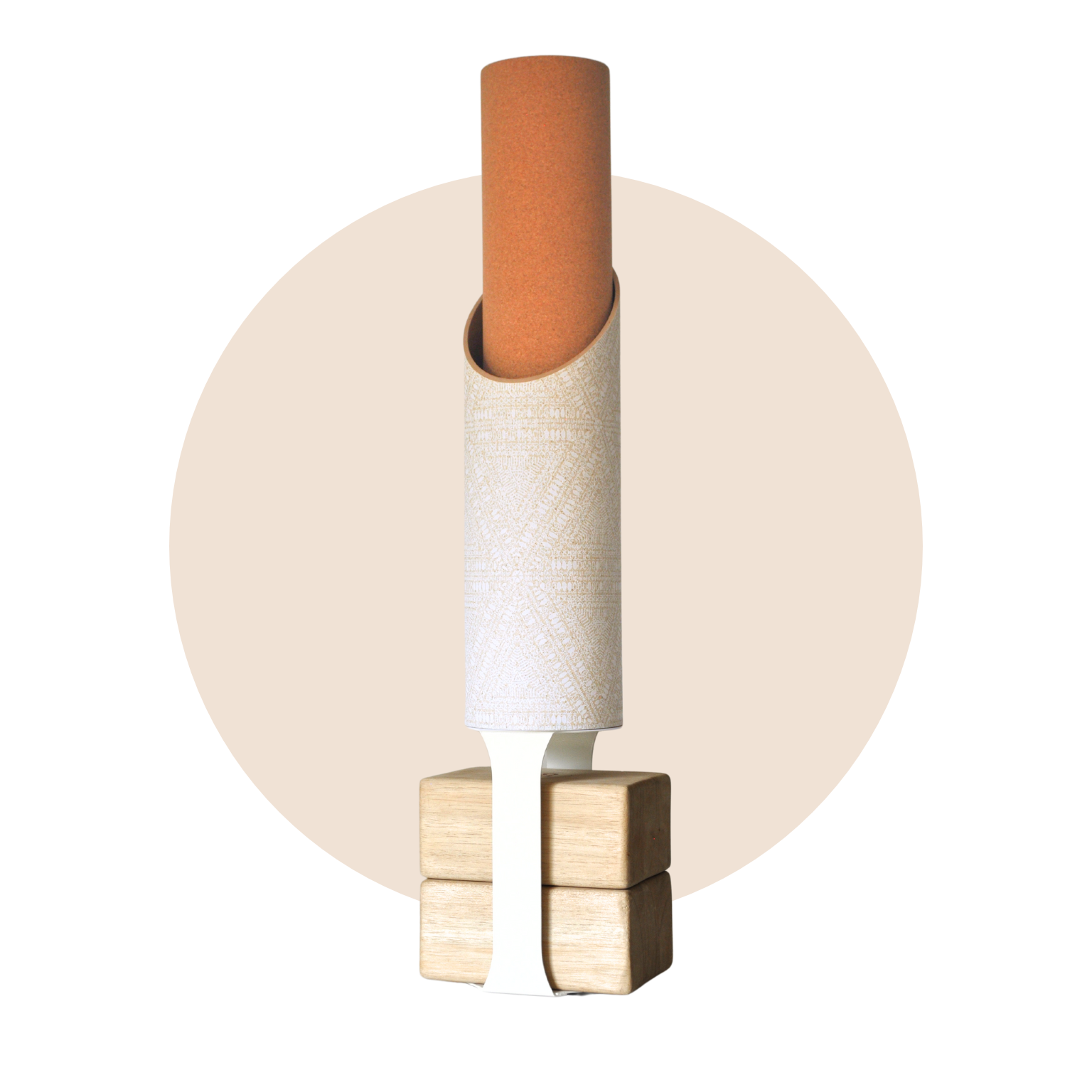 Tribal Yoga Storage Bundle reflects an ancient motif that adds a pitch of primal to your home yoga studio or gym. Tune into the drum of your own rhythmic heart while you contemplate whether creamy or earthy tones best resonate with your fitness regime. This designer decor stores and organizes your yoga mat or foam roller, two yoga blocks and a yoga strap, keeping your props tidy and accessible for easy use.