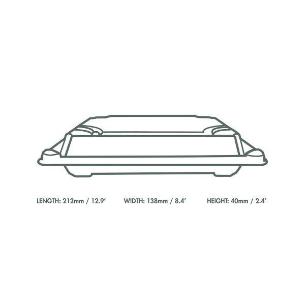 A plant-based sushi tray and lid. Amazing presentation for premium cold platters - sushi, cut fruit, dessert selections, or cheeses. Made from PLA, a renewable material made from plants. Black base with a clear lid for visibility. Award-winning quality by Vegware, made from plants. Designed for industrial composting.